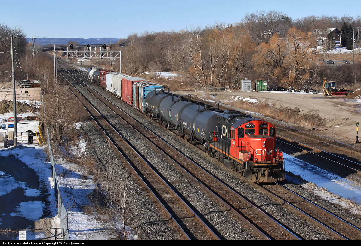 RailPictures.Net Photo: CN 7080 Canadian National Railway EMD GP9 at Burlington, Ontario, Canada by Dan Tweedle