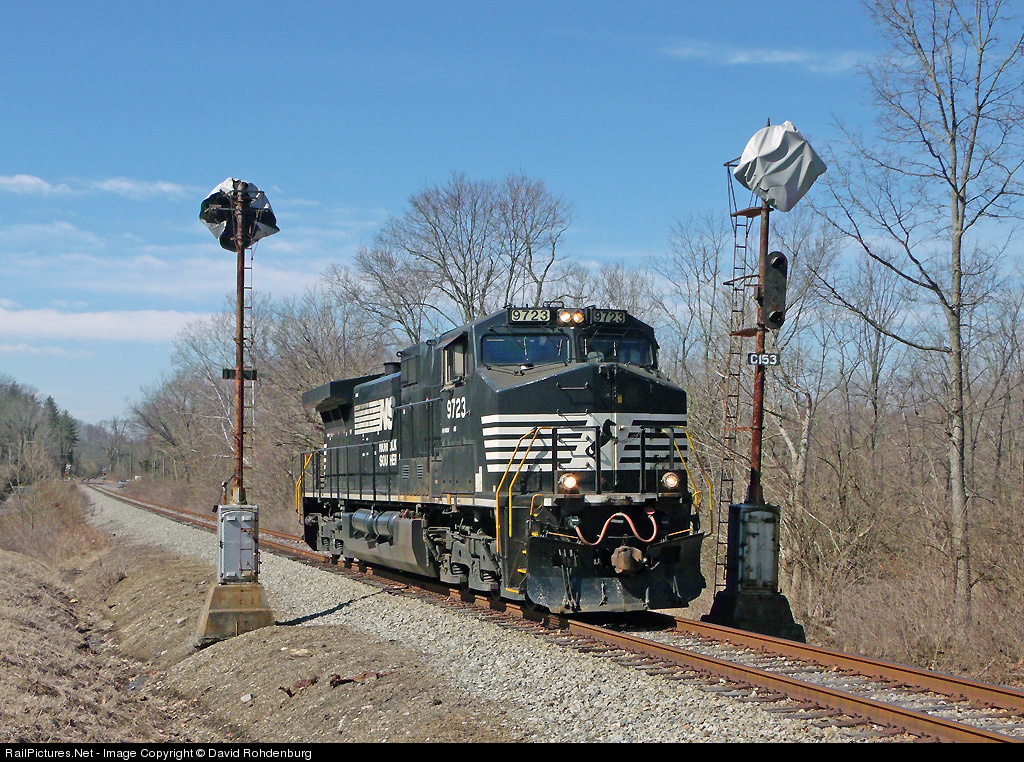 NS 9723 rolls engine lite eastbound on the former N&W Cincinnati District as local freight T51, splitting the mothballed N&W CPL signals at South Milford. T51 is the sole remaining train serving the Cincinnati District, which is railbanked east of Peebles, Ohio to Portsmouth. Images like this would shortly become priceless, because it was announced a few days later that a new Frontier Rail shortline known as the Cincinnati East Terminal (CCET) would be taking over this operation via lease by the end of April 2014.