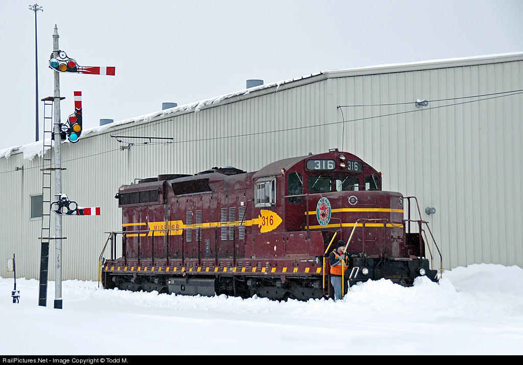| The crew at the North Shore Scenic Railroad use ex-Missabe 316 to plow through the yard trackage after a significant over night snowfall. The crew was working on getting the FP7 SOO 2500 and, when ready, would then head up the coast of Lake Superior to pull coal cars out of storage to deliver back to the BNSF. A long day for this all volunteer operation. |