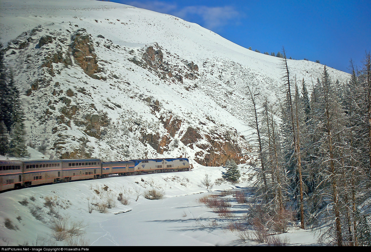 Amtrak P42DC #63 leads our train, the westbound 'California Zephyr' through Fraser Canyon, CO. My wife & I rode this train as part of a trip from Buffalo to Sacramento (on the 'Lakeshore Limited' & 'California Zephyr') to visit the California State Railroad Museum, before continuing on to visit LA (on the 'Coast Starlight'), and returning to Buffalo (on the 'Southwest Chief' & 'Lakeshore Limited'). For more pics & videos from this trip see my website at http://northamericabyrail.info/california-state-railroad-museum/