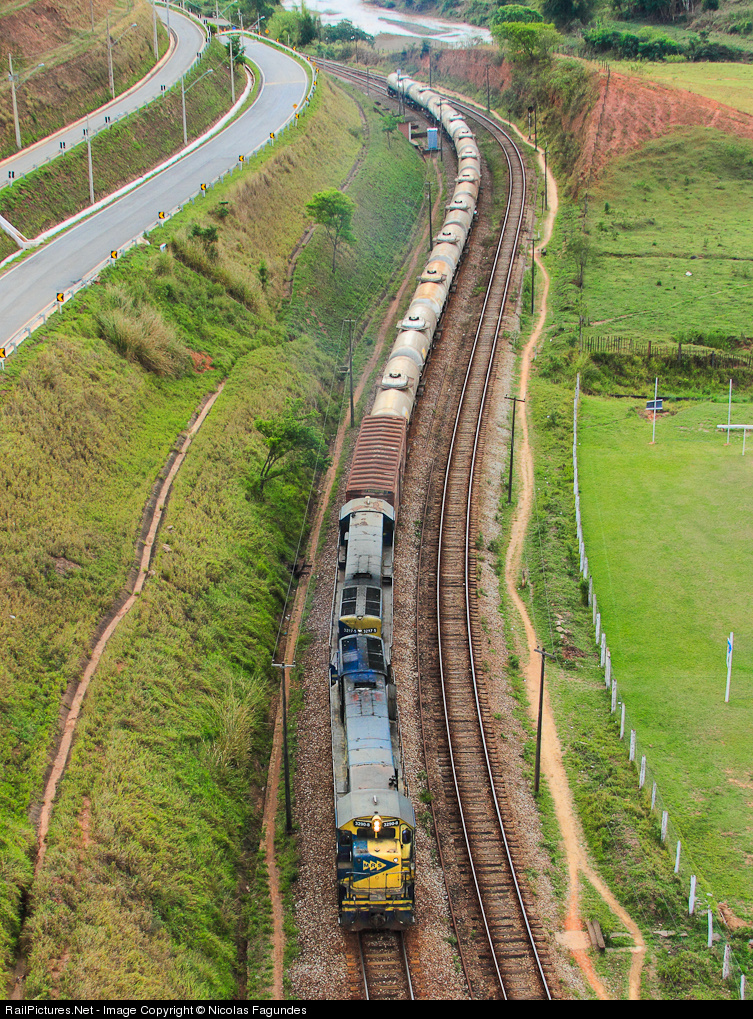 | One of oldest General Electric locomotives working to MRS pulling a rare tanker train, this train travels a short distance between Contagem-MG and São Brás do Suassuí-MG carrying loaded tank cars to P1-7 yard, Where there's a fuel supply. |