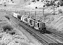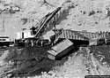 Rio Grande's Roper Derrick 027 was called to help clean up a 13 car derailment in Spanish Fork Canyon on March 28, 1976. Lead by GP9s 5922 and 5932, the work extra passes through Detour about four miles below the derailment site at Gilluly.