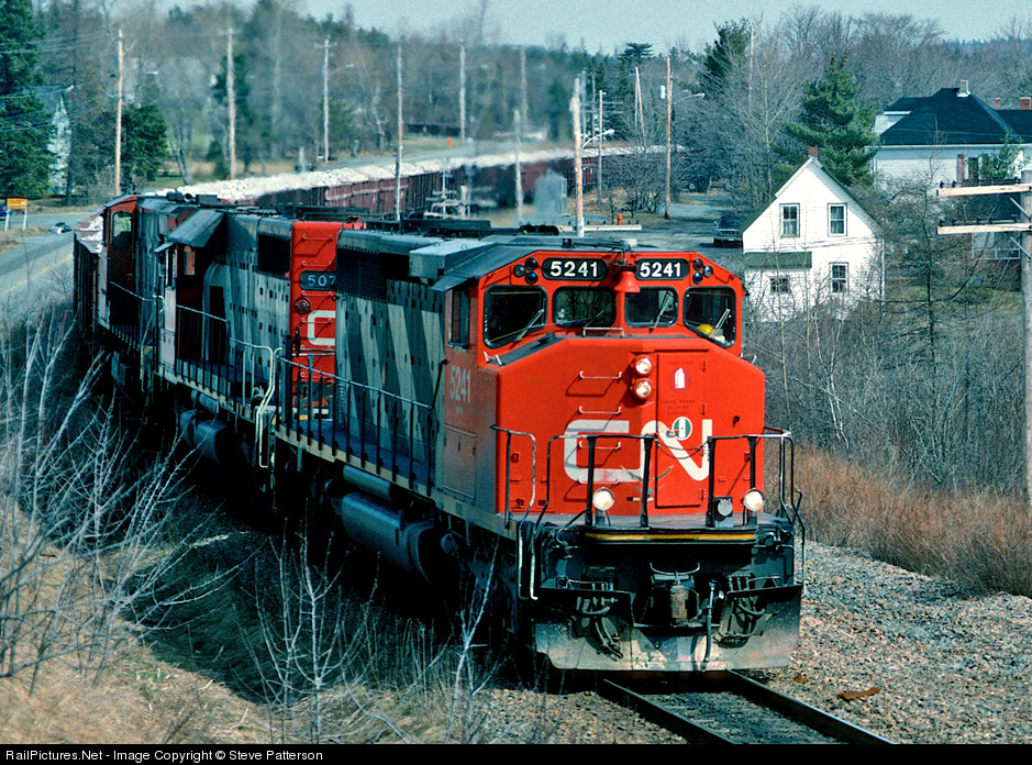 Nineteen years after CN’s wide-nose SD40-2 5241 was photographed crossing the Thompson River in British Columbia, it was leading a train load of gypsum near Windsor Jct., Nova Scotia, about 3,000 miles apart. On April 13, 1994 it appears CN was taking care of its motive power.