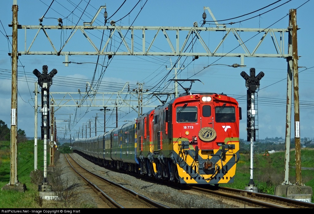 TFR (Transnet Freight Rail) certainly put on a show when their world renowned Blue Train visited Durban during November 2013! Two brand new Class 18E locomotives, 18-773 & 18-772, were assigned to work the train. They are pictured here, running ahead of schedule late on a spring afternoon (16:06), while working the train back to Pretoria on the return leg of the journey.