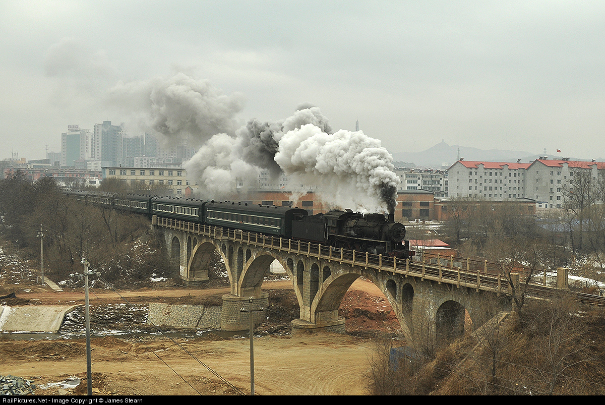KD6 487 is seen powering across the main bridge in Daiobingshan with a management special on the Tiefa mining railway system. The KD6 is significantly older than other steam locomotives now at work in China and actually originates in the USA having been shipped to China (via Europe) following WWII.