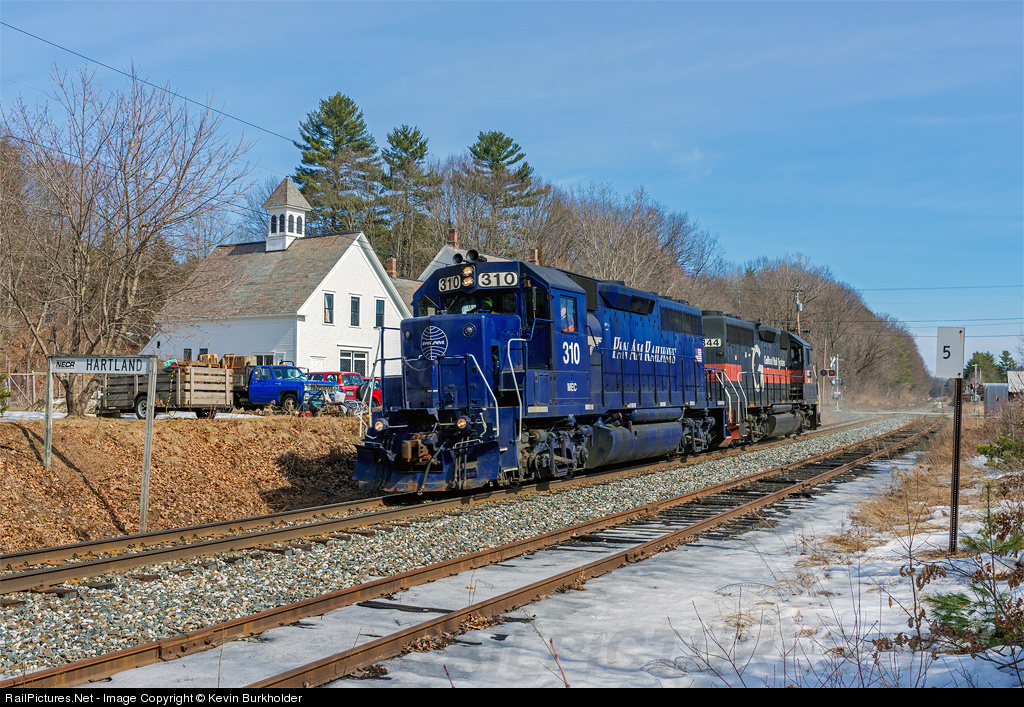 As Pan Am gears up for the regular return to White River Junction, Vermont next month, crews are making qualification/familiarization trips between Bellows Falls and White River Jct. On April 7, MEC GP40s 310 and 344 are seen southbound at Hartland, Vermont on the New England Central Railroad trackage rights that they exercise on the former B&M/CV trackage.