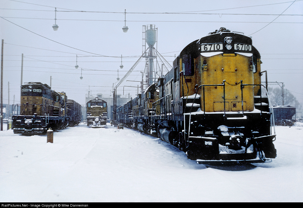On a very cold and snowy January 1984 day in Wisconsin finds a quiet stillness at the engine facility of Chicago and North Western’s Butler Yard. Two Alco C-628’s find respite from lugging ore due to the frozen Great Lakes, are helping out with regular freight hauling to the south and are surrounded by the usual gathering of EMD GP7s. Tiny, icy snowflakes filter down, highlighting anything remotely horizontal. The normally greasy tracks are cloaked in winter white. Hard to believe this was thirty years ago…