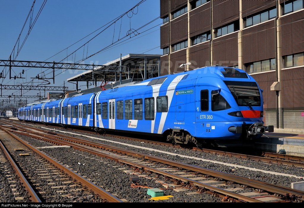 This Flirt-ETR-360, the first of four trains for regional service, entered service a few months ago on the route Venice / Portogruaro. The trains are built by Ansaldo-Stadler are composed of six elements and will be used on the lines of the Veneto region managed by "Trenitalia" according to an agreement between the "Regione Veneto" and "Sistemi Territoriali" on each of the six elements, has been applied the logo of "Trenitalia"