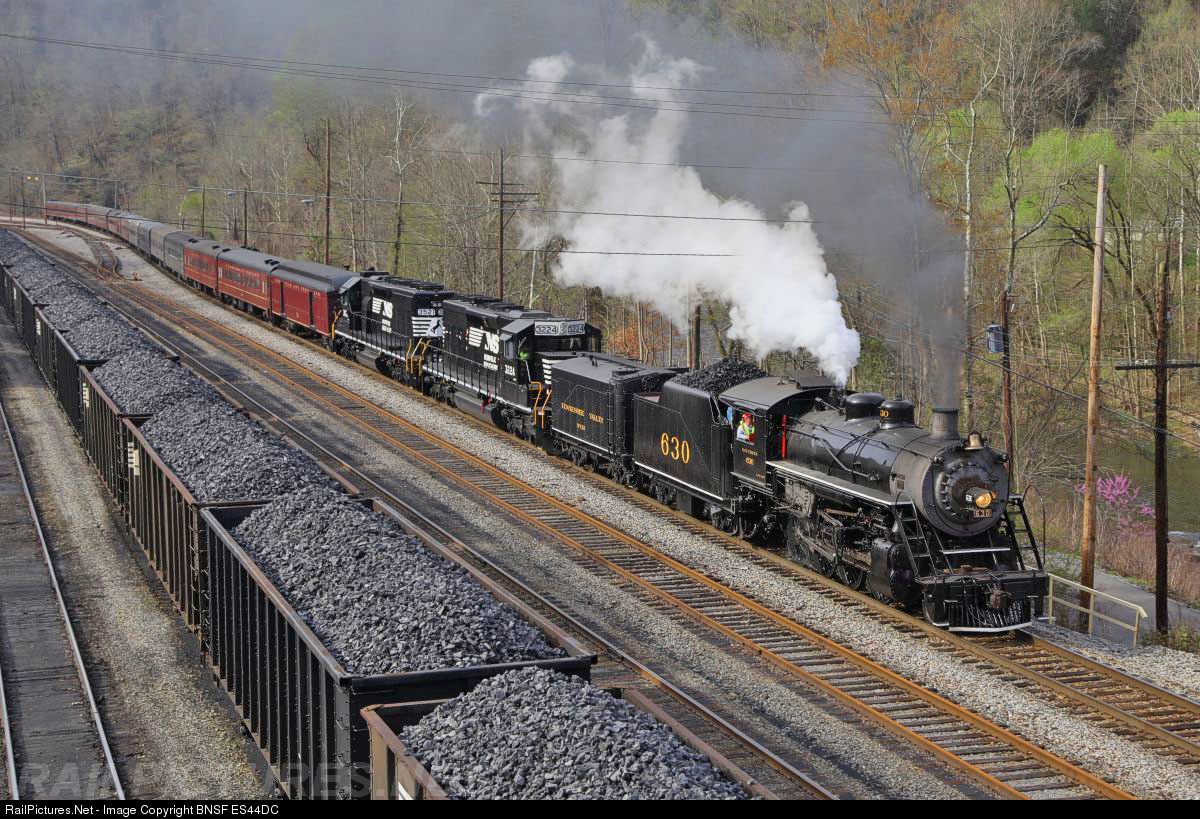 RailPictures.Net Photo: SOU 630 Tennessee Valley Railroad Museum Steam 2-8-0 at Weller, Virginia by BNSF ES44DC