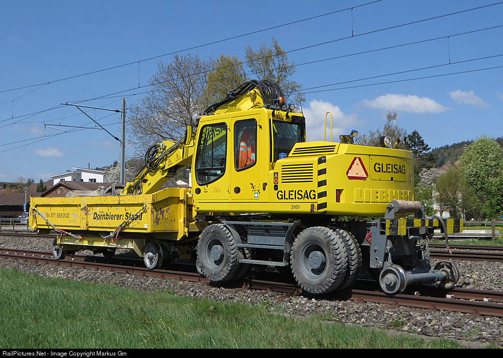 Unimog (vehicle for track and road) and the material car wait in the lunch hour until the workers come back