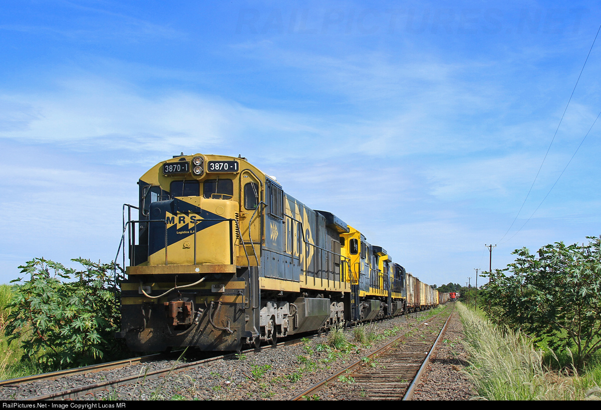 | Southbound loaded MRS train M62, standing by at Tamoyo yard, headed by GE C36ME #3870. The trailing units are Super 7 #3504 and SF30C #3732. |