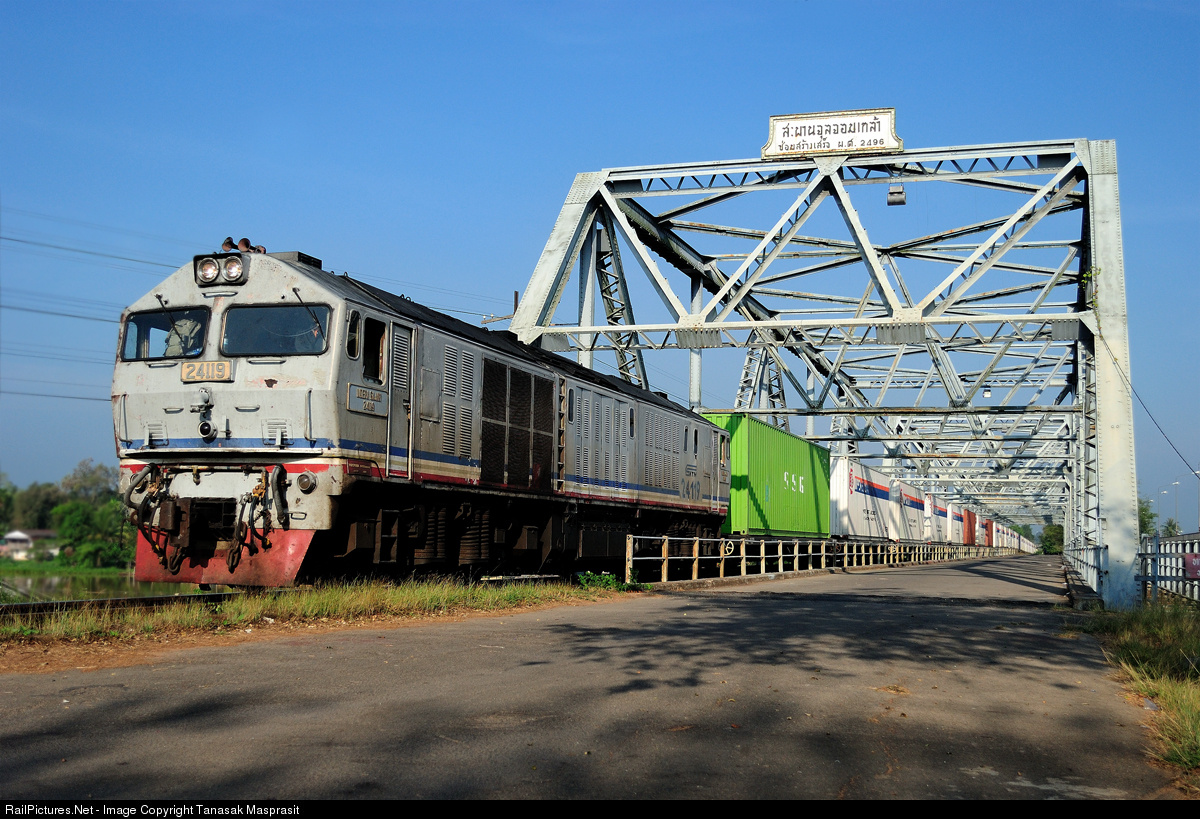 Toshiba (KTM 24 Class) no. 24119 was hauling the "Landbridge" freight train no. 781 from Bangsue junction to Padang Besar. It was passing Chulachomklao bridge.
