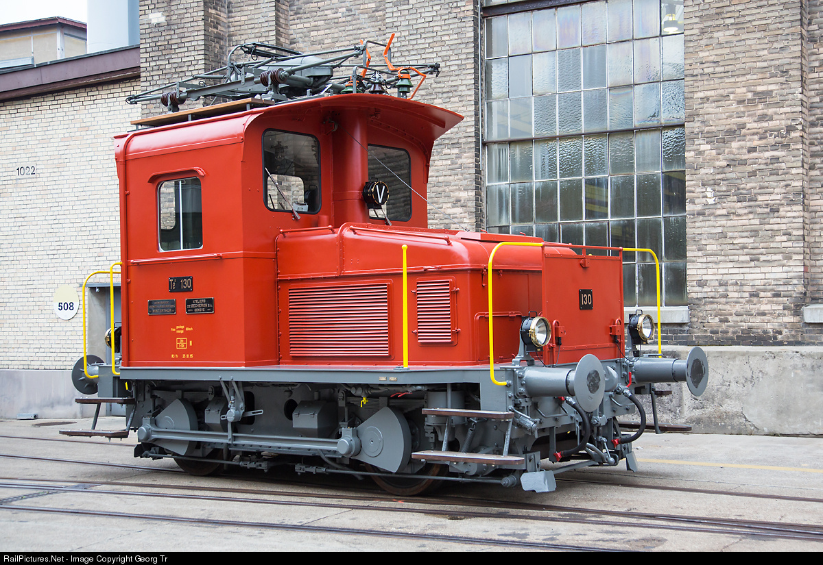Little electric locomotive (in Switzerland called "Traktor") Te III # 130, mainly for shunting in stations, but also capable to go on the line with up to 60 km/h. Built in 1947 by SLM Winterthur and SAAS Genève for the SBB, now running for "Depot und Schienenfahrzeuge Koblenz" (DSF).