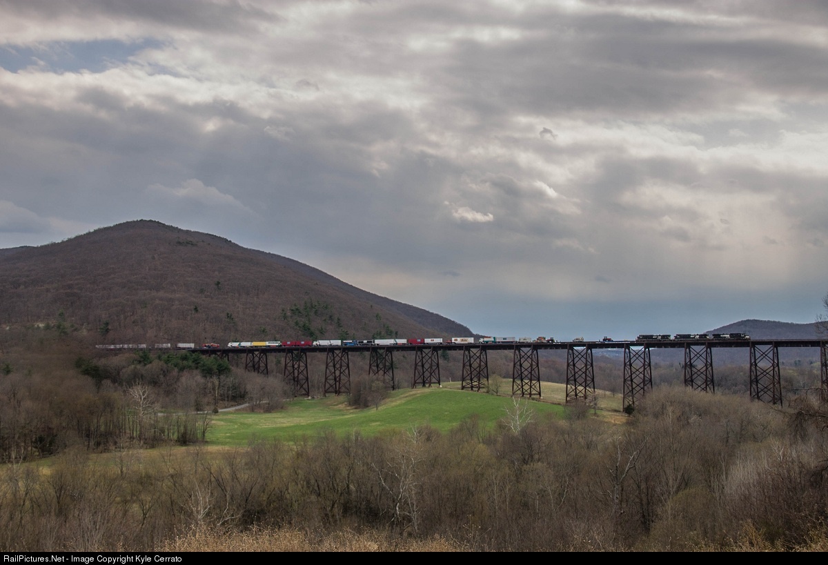 In a rare daylight move, Norfolk Southern H90 crosses the Moonda Viaduct. The move was for the James E. Strates carnival train, enroute to Middletown, NY.
