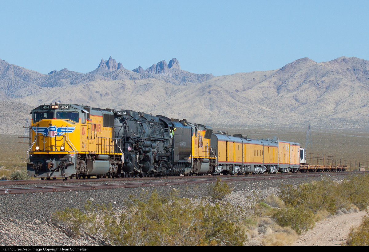 Big Boy 4014 climbs into Nipton for a crew change and service as it makes its way home to Cheyenne.