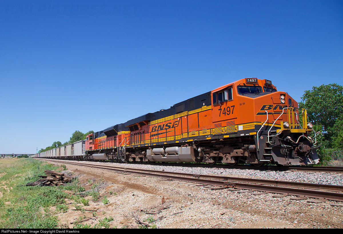 RailPictures.Net Photo: BNSF 7497 Burlington Northern Santa Fe GE ES44DC at Farmers Branch, Texas by David Hawkins