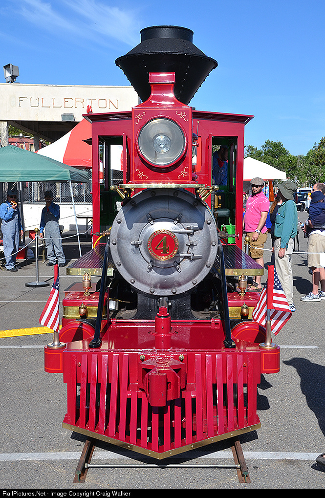 A week after chasing one of the largest steam locomotives as Union Pacific "Big Boy" 4014 was towed back to Wyoming for restoration, I had the pleasure of photographing a very small steam engine - Disneyland Railroad #4, the "Ernest Marsh," a 3' gauge engine that was on display at Fullerton Railroad Days. This diminutive gem was built by Baldwin in April 1925 as an 0-4-0 for the Raritan River Sand Company in New Jersey. After it was acquired by Disney in the 1950s, the locomotive was extensively rebuilt, including converting it to a 2-4-0. The rebuilt engine, named for Santa Fe president Ernest S. Marsh, entered service as Santa Fe & Disneyland #4 on July 25th, 1959, and is one of five steam locomotives in service at Anaheim's Disneyland park.