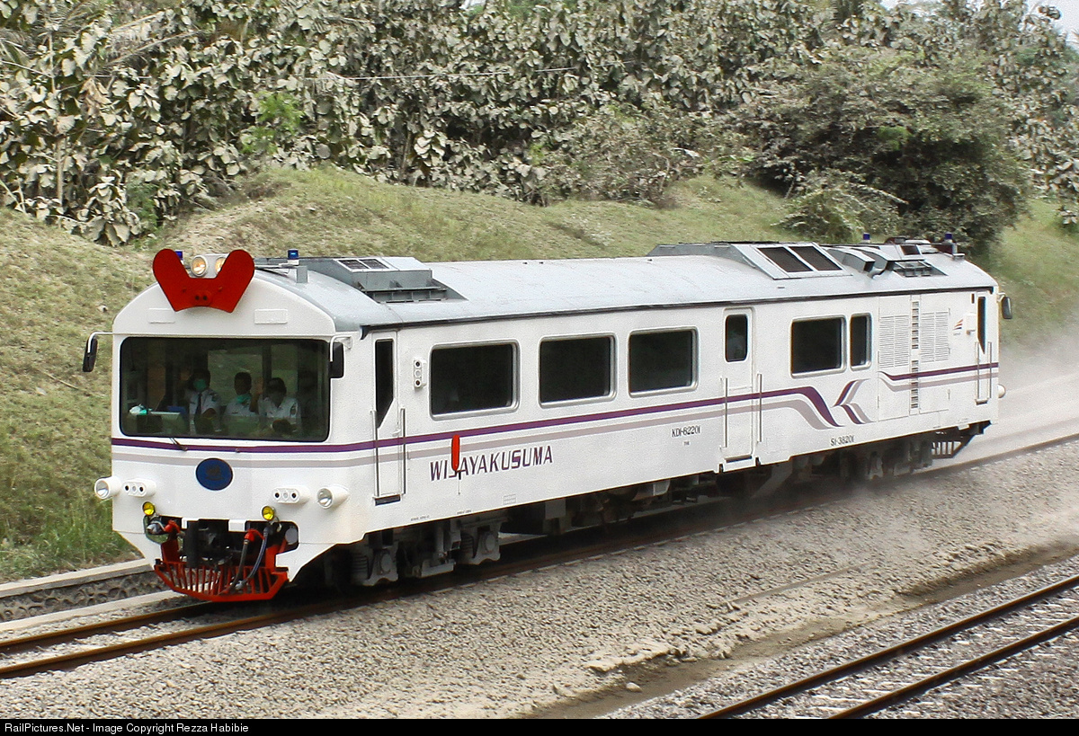 | Inspection railcar called Wijayakusuma passing at track with dusk, the crew give me the sign from inside the cabin. |