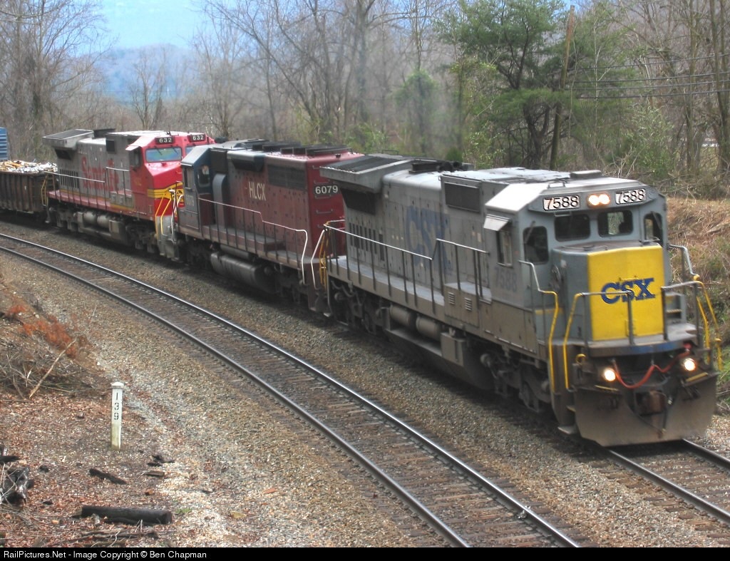 CSX 7588 laeds Q646 with HLCX 6079 and ATSF 632 in tow.