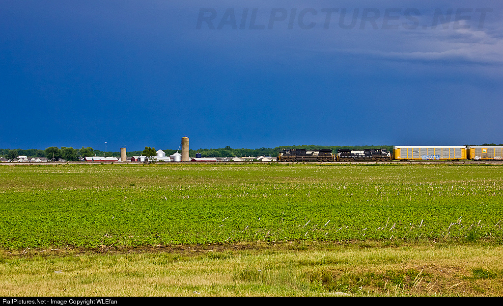 | As a storm looms in the back ground, NS 14T takes the connection east in Vermilion transferring from the former NKP to the NYC. 14T used to take the NKP all the way from Fostoria to Buffalo just days prior, NS has since adopted this routing method and now all 14T's take the connection in Vermilion. |