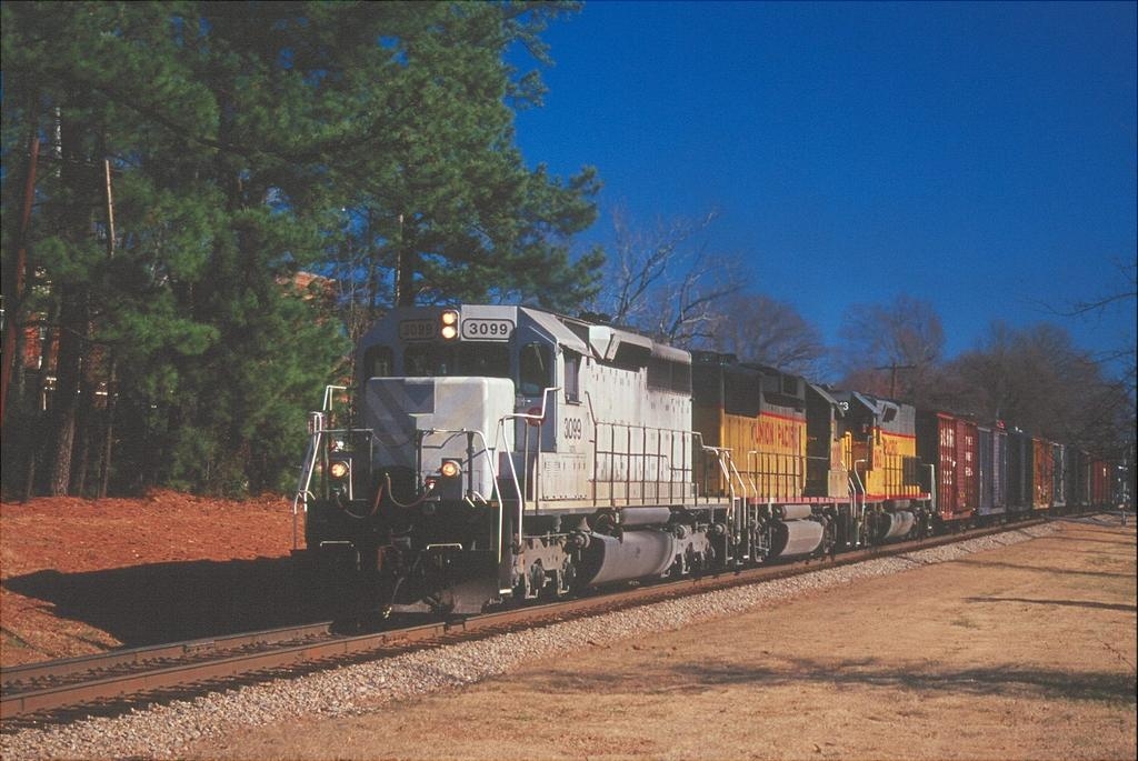 Originally built 5/68 as SP 8484 (SD40). Rebuilt/renumbered 2/81 by SP's Sacramento Shops as SP 7351 (SD40R). Retired from UP 6/30/99. Purchased and refurbished by Alstom and designated as GCFX 3099 (SD40-2).