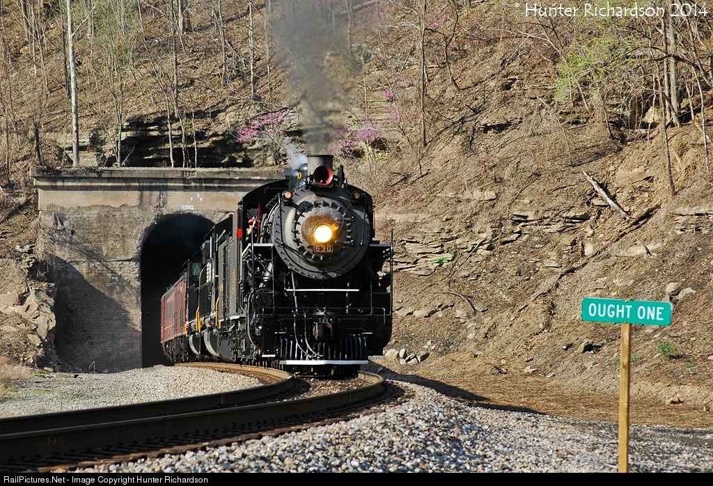 | After turning on the wye at Devon, TVRM's Southern Consolidation 630 leads "The Tri County Mountaineer" out of the tunnel at Ought One on Norfolk Southern's Buchanan Branch during the last run of the day. |