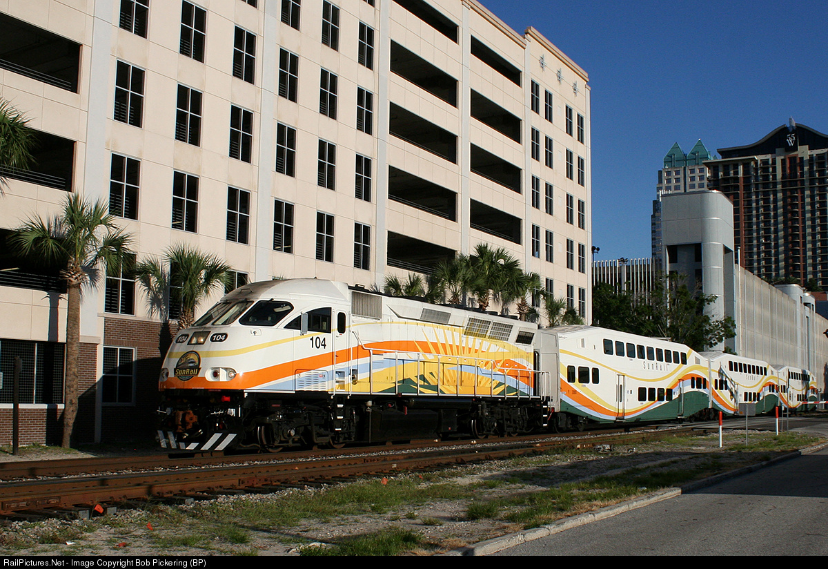 | Through the heart of Orlando! A three car set has just left Church Street and now heads for Lynx Central. In an attempt to handle the massive crowds, 3 car sets were running. |