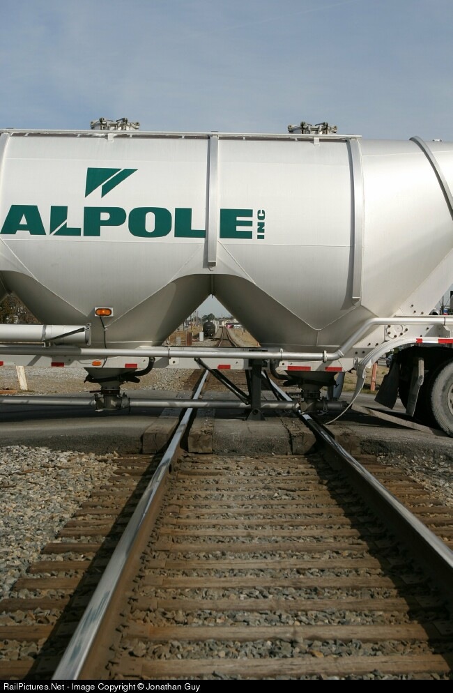 Truck driver ignores signs and attempts to cross on Hwy 92. Dolly hung in guage. A65 sits in the siding just east of the crossing.