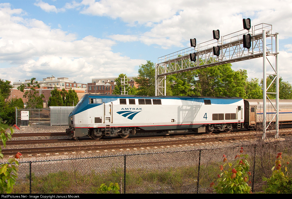 The Carolinian heads north under the SB signals at Slaters Lane. This view is from the bike path of the recently created Potomac Yard Park, a narrow park, maybe 30 yards wide, that sits alongside the west side of the main line. Much of the strip between the bike path and RoW has been planted with trees and already most of the views are obstructed, and in 5-10 years will be wooded; a few of those trees are seen in the foreground. A few vantage points have been left open.