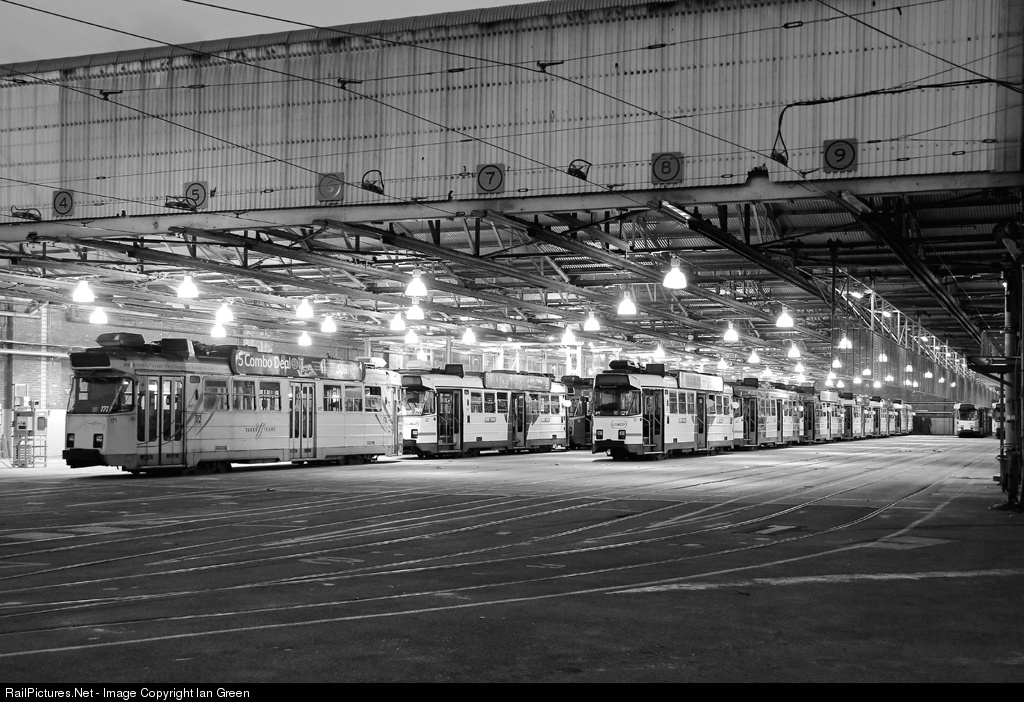 Z class trams rest at Brunswick depot on a quiet Sunday evening.
