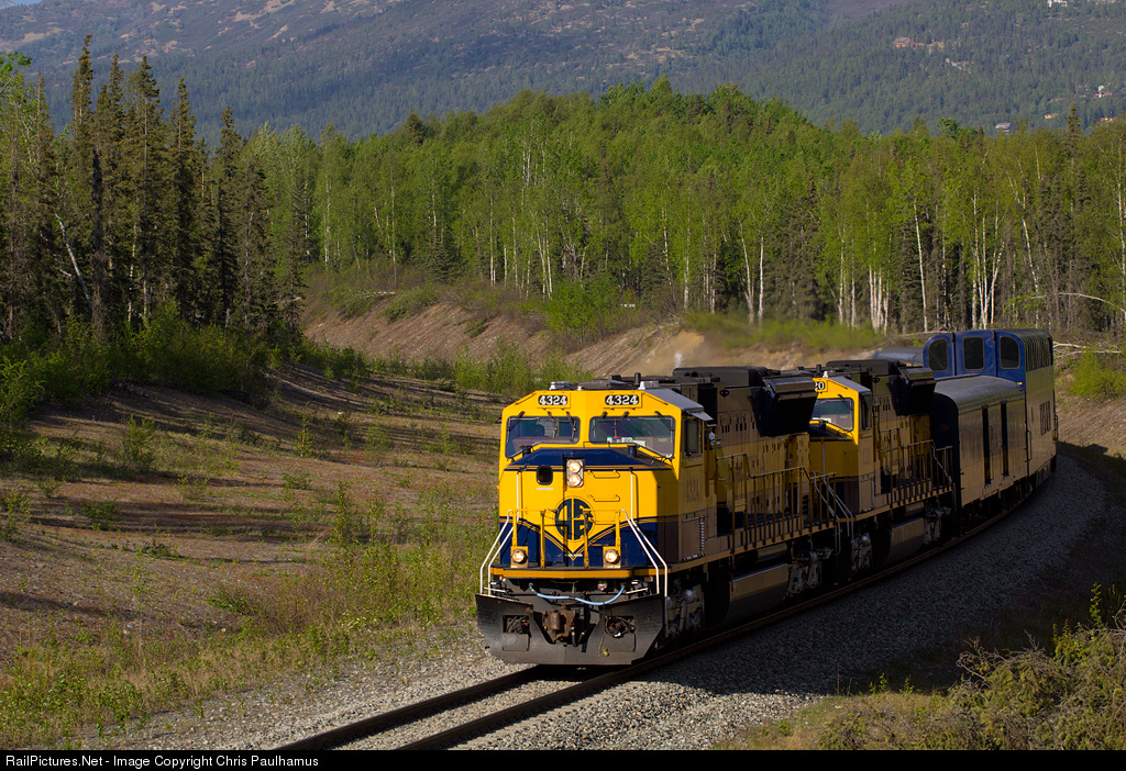 The southbound Denali Star slinks through the confines deep within Ft. Richardson about 40 minutes from its destination in Anchorage. Unbeknownst to me at the time and very close to where I took this photo, a female jogger had been mauled by a brown bear with cubs just a few hours beforehand. I did have my bear spray with me, but had I known about the attack, I sure as heck would have picked a different location to railfan!
