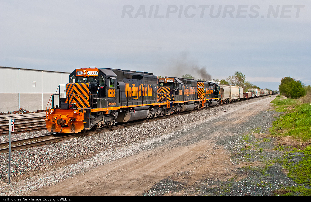 | WE 223 Blasts east to Toledo,OH (CN Lang Yard) on the former Wheeling & Lake Erie mainline. WE 6383 is sporting a name "J.J. Gonzales" This name belongs to the Wheeling & Lake Erie's Track Consultant. |