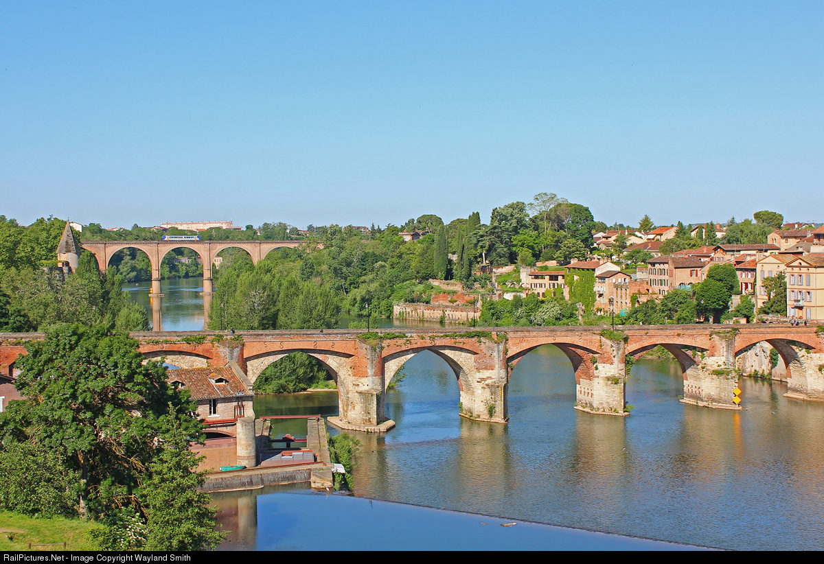 An SNCF DMU crossing the viaduct over Le Tarn in Albi.
