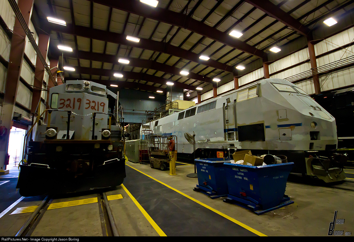 Two different locomotives, two different railroad. NS 3219 and MTA 222 sit side-by-side during Norfolk Southern's "Family Day", at their Juniata Locomotive Shops.