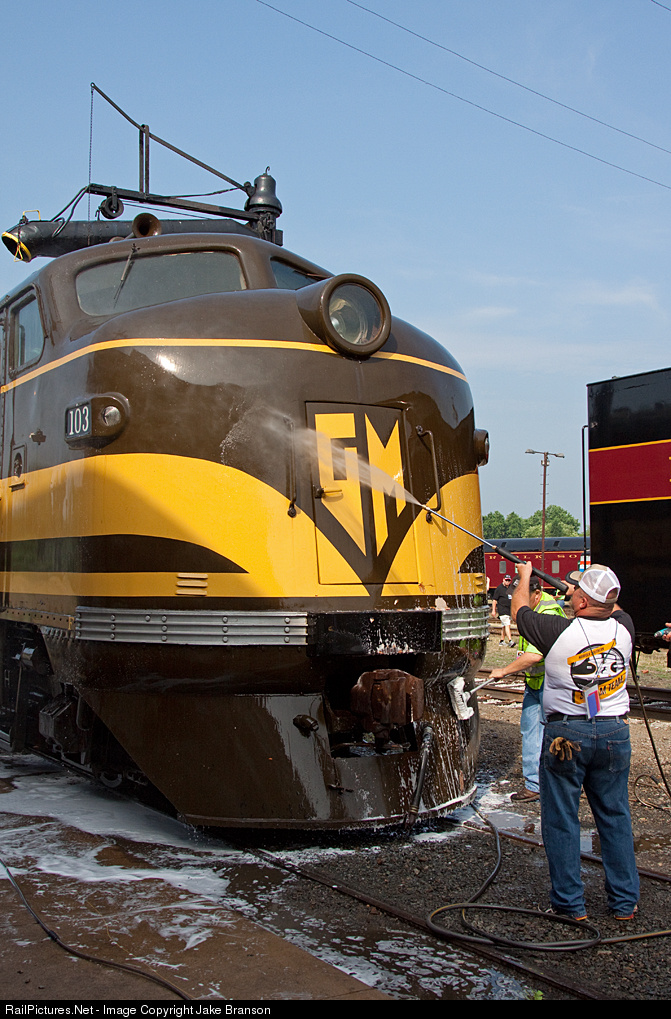 Reproducing a Classic. One of my favorite railroad photos (See it here: http://en.wikipedia.org/wiki/File:ATSF_DL_in_Kansas.jpg) involves the cleaning of ATSF FT #103 in 1943. 71 years later in Spencer, NC, the scene is played out once again as another FT numbered 103, this one being the EMD demonstrator, gets a thorough washing prior to the Streamliners in Spencer event.