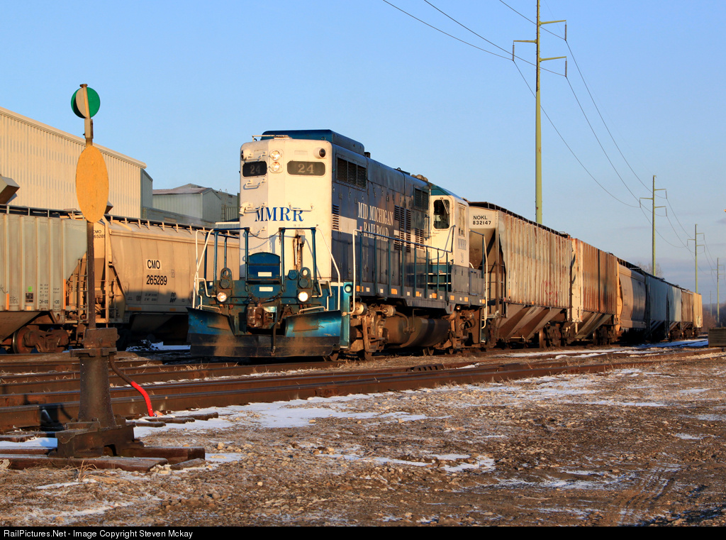 | In the early morning light MMRR 24 doubles up it's eastbound train for King Milling in Lowell. Due to only having one engine and King Milling's business increasing the crew would have to make two trips east this day. |