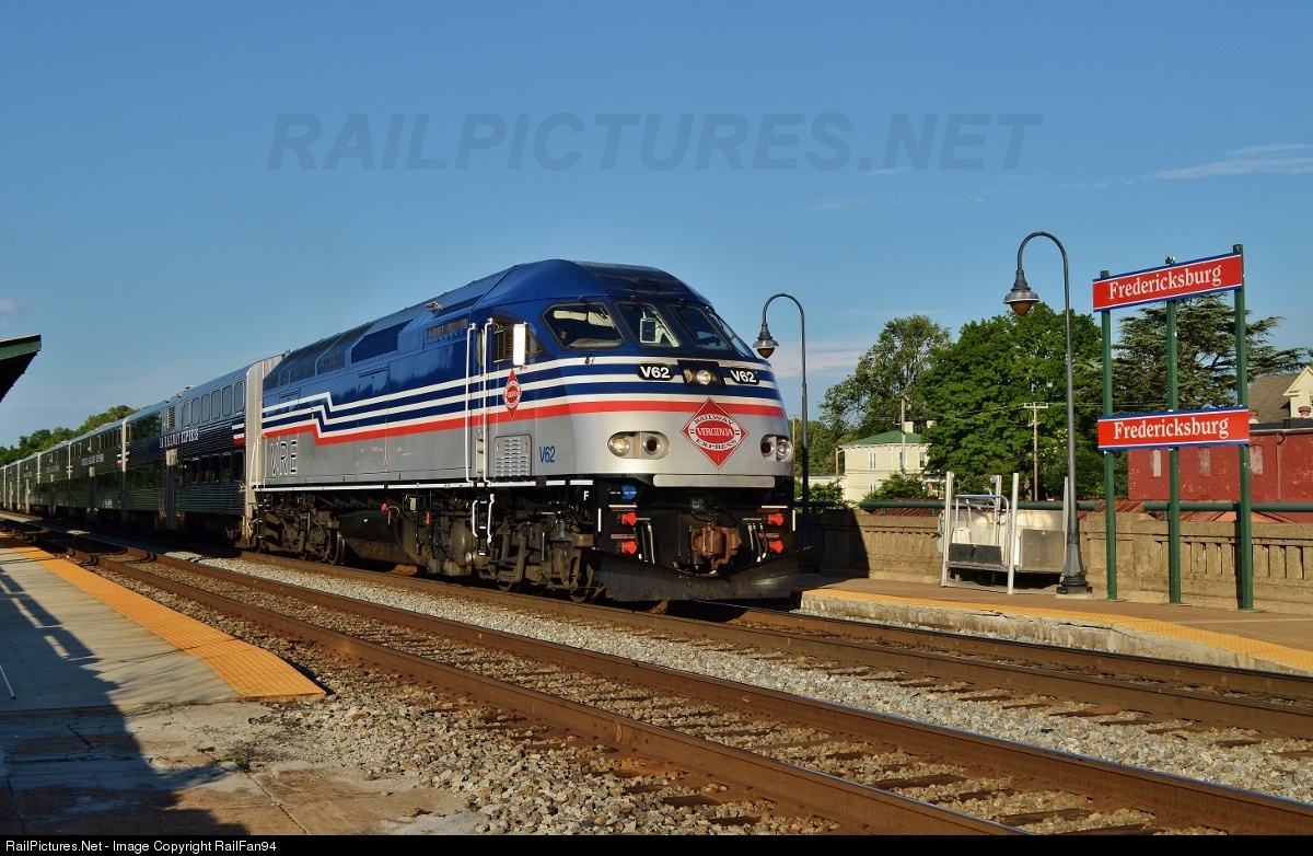 RailPictures.Net Photo: VRE V62 Virginia Rail Express (VRE) MPI MP36PH-3C at Fredericksburg, Virginia by RailFan94