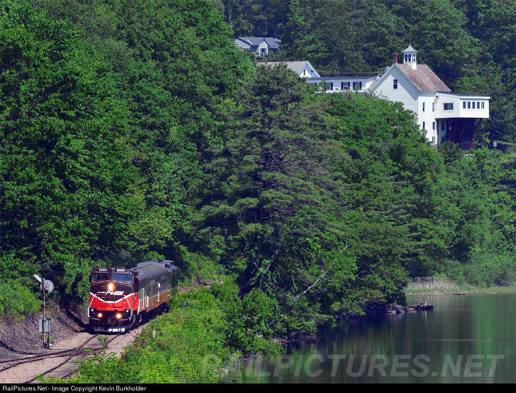 | On June 3, the Vermont Rail System, New England Central and Providence & Worcester Railroad operated a Green Mountain Gateway inspection trip with P&W B40-8W 4006 leading the office car special. The passenger special is seen along the Connecticut River with the Joy Wah Chinese restaurant in the distance overlooking the river valley and the GMRC. |