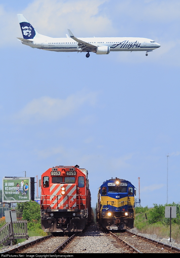 | Hang Time - CP trains 280 and 276 get hooked by an Alaska Air 737, on approach to Ohare...It's going to be a while before these CP hotshots land at their final terminal, only a mile behind me. |