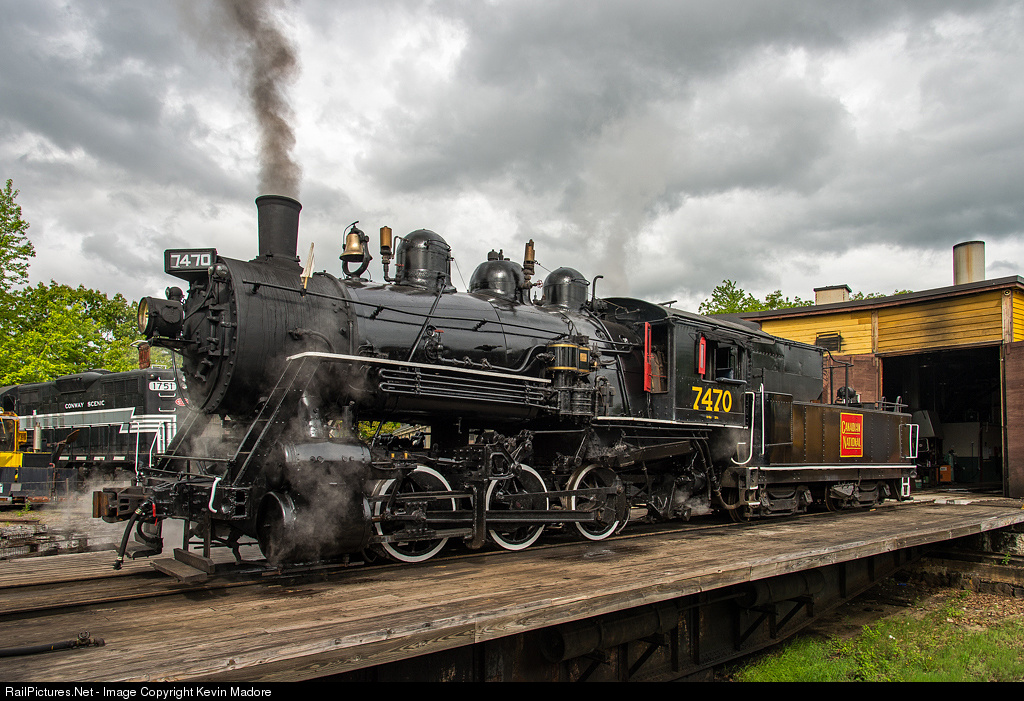 Last dance?.....Well, maybe. Sporting an immaculately clean boiler jacket and some fresh paint here and there, the Conway Scenic Railroad's hefty Canadian National Switcher #7470 emerges from the roundhouse for a brief pose, before taking command of special excursion for the Massachusetts Bay Railroad Enthusiasts (MBRRE). With the knowledge that 7470's 1,472-day inspection would be expiring in July of 2014, the MBRRE folks elected to charter her for one last tour of the railroad's mileage to Conway, Redstone and Bartlett. The result was an all-day photo excursion for about 100 lucky patrons. The railroad has apparently applied to the FRA for an extension on the deadline for the boiler inspection, so it is possible that we may yet see 7470 a few more times. If granted, the extension would allow her to operate during the fall colors season, and for the annual "Steam in the Snow" excursion in January of 2015. After that, it is expected that she'll be out of service for at least a couple of years.