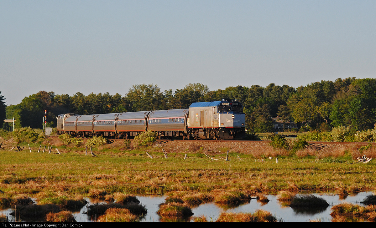 | AMTK 90214 leads 688 through the Scarborough Marsh on a beautiful spring evening. Starting in Brunswick Maine, this train is headed for Boston. AMTK 108 was the power at the back. |