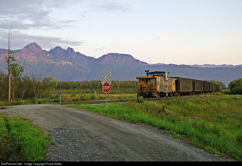 In 2008 the Alaska Railroad was still using cabooses on the rear of the daily gravel trains, as seen here as the AS&G gravel train rolls off the Palmer Branch and onto the mainline at Matanuska Junction.