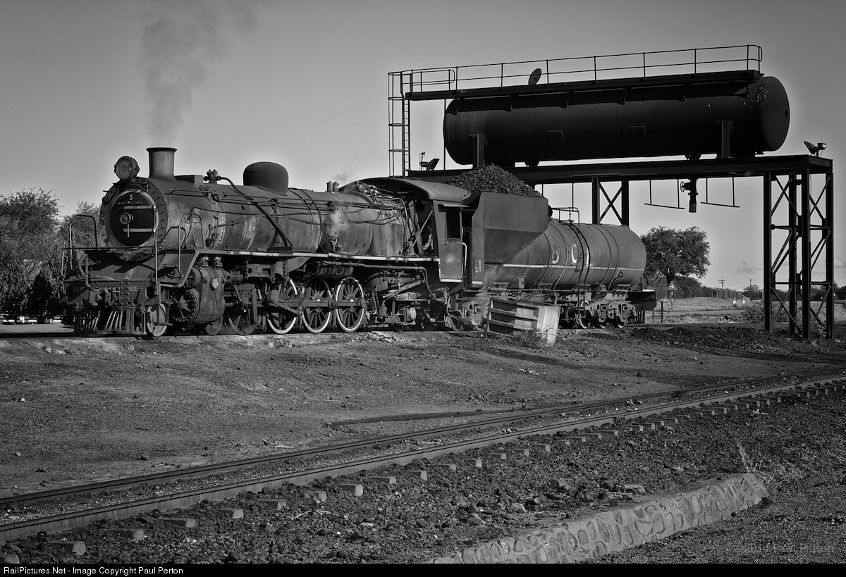Former South Africa Railways (now BCL) 4-8-2 Class 19D No. 805 takes water at the Selebi Phikwe shed.