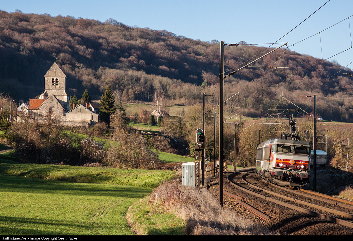 | A TER service from Paris to Châlons-en-Champagne passes the church of Reuilly-Sauvigny. At the time of the photo, all these TER services were hauled by BB 15000 engines. |