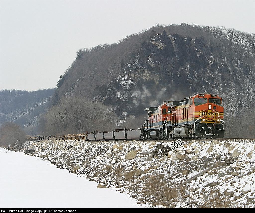 RailPictures.Net Photo: BNSF 4357 BNSF Railway GE C44-9W (Dash 9-44CW) at Lynxville, Wisconsin by Thomas Johnson