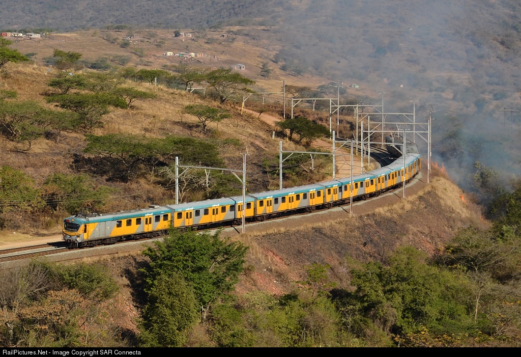 | This short (8 coach) Type 10M5 Metrorail set bound for Cato Ridge was lucky to have missed the worst of this still burning trackside grass fire (very typical during the dry winter months) as it passed through Cliffdale. |