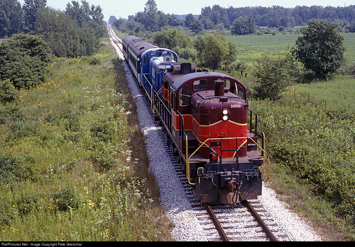 Former C&NW/CM&N/Monroe RSD-5 1689 heads up a passenger excursion operated by the short-lived "Indiana Erie" on the Tippecanoe Railroad.