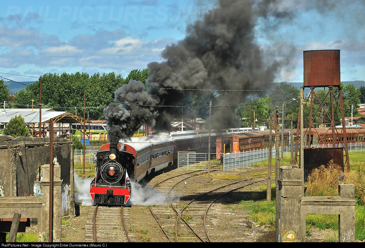 | Departure from the former Valdivia railway station, heritage and tourist train "Valdiviano" with the steam locomotive built by North British 2-6-0, remembering those old travel through the Antilhue - Valdivia railway branch. |