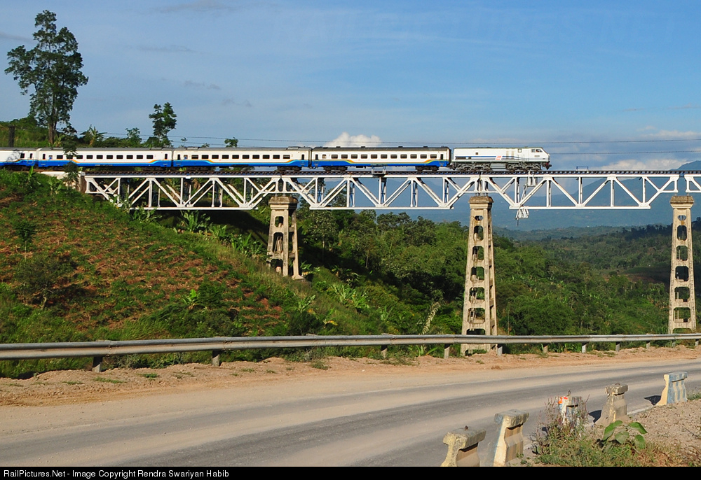 Mix passenger train from Bandung to Malang (Malabar) while passing a bridge over the ring road Nagrek near Lebak Jero Station