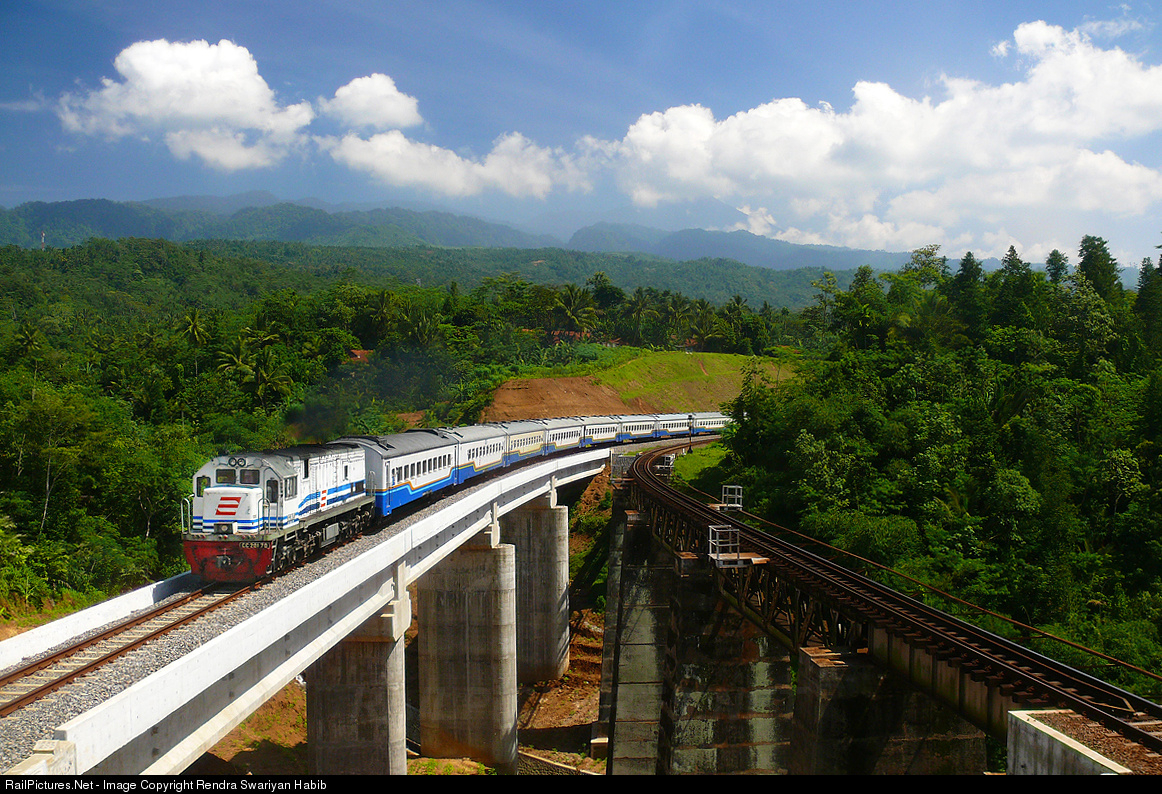 Sawunggalih train was crossing a bridge at Tumiyang village, Purwokerto, Central Java